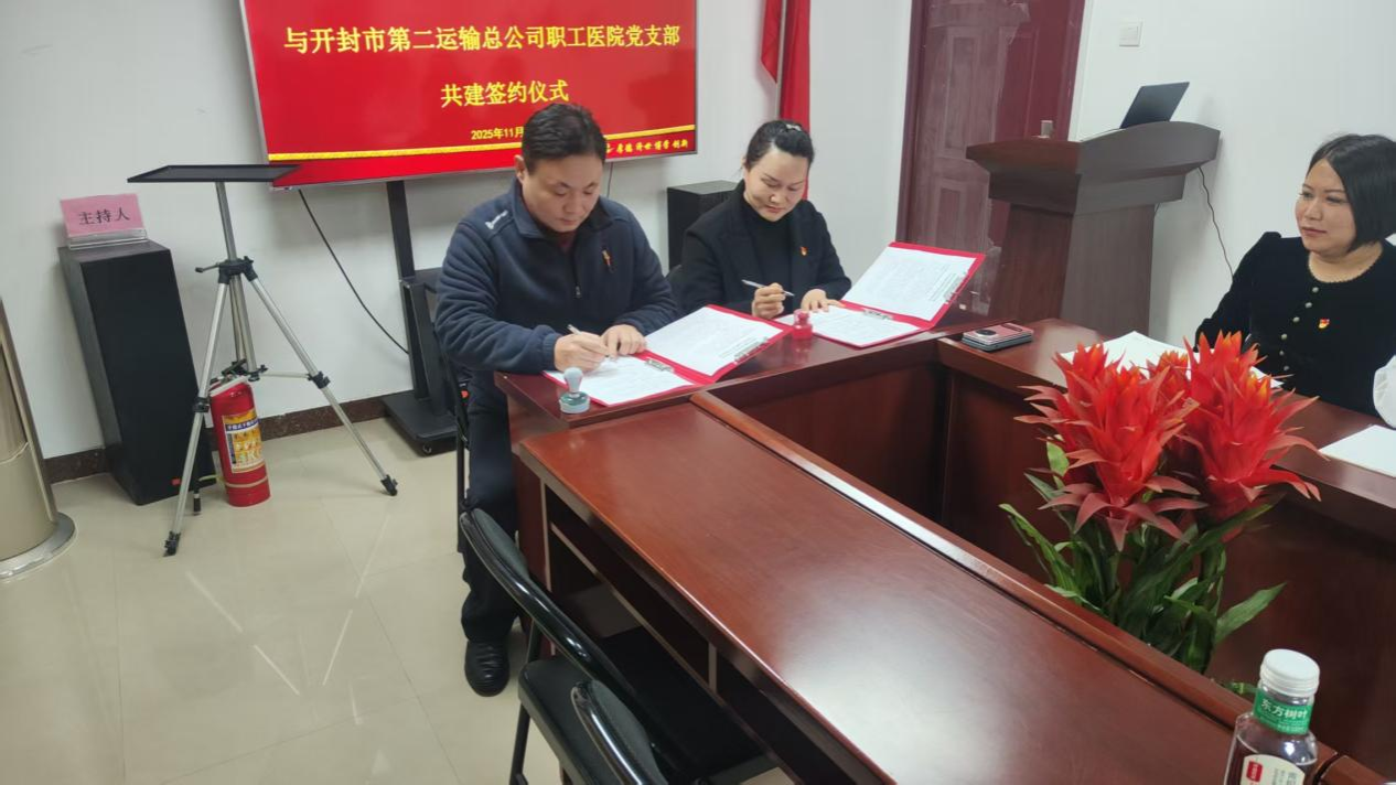 为深入贯彻落实新时代党建工作要求,推动基层党组织协同创新,实现资源共享、优势互补,11月5日,黄河水利职业技术大学教服保健党支部与开封市第二运输总公司职工医院党支部在社区医院党建活动室举行党建共建签约仪式。我校教服保健党支部书记杨树峰、支委党员王科、马祎琛,开封市第二运输总公司职工医院党支部书记张红燕、工会主席韩坤及党员骨干共同出席此次签约活动。