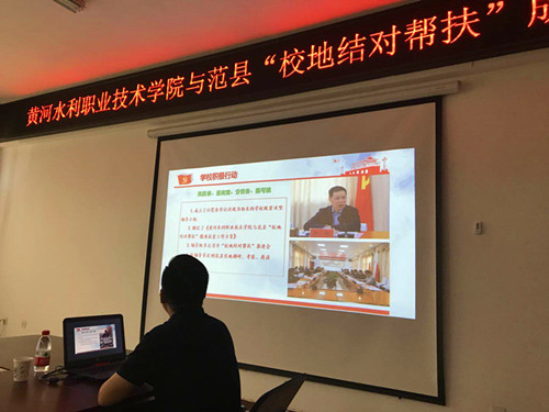 总支书记王建设给党委汇报“校地结对帮扶”扶贫成果
