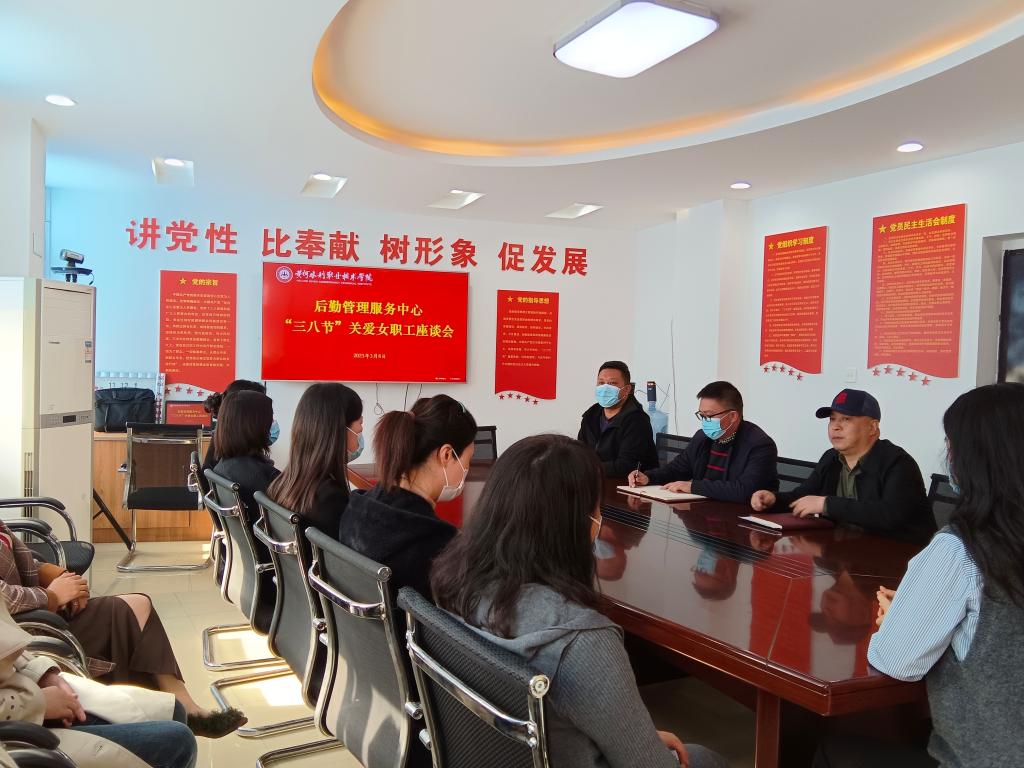 3月8日上午,为纪念“三八”国际劳动妇女节113周年,后勤管理服务中心在四楼会议室召开庆祝三八国际劳动妇女节关爱女职工座谈会。后勤领导班子、分工会委员、女职工代表参加座谈。座谈会由分工会主席王宁主持。
