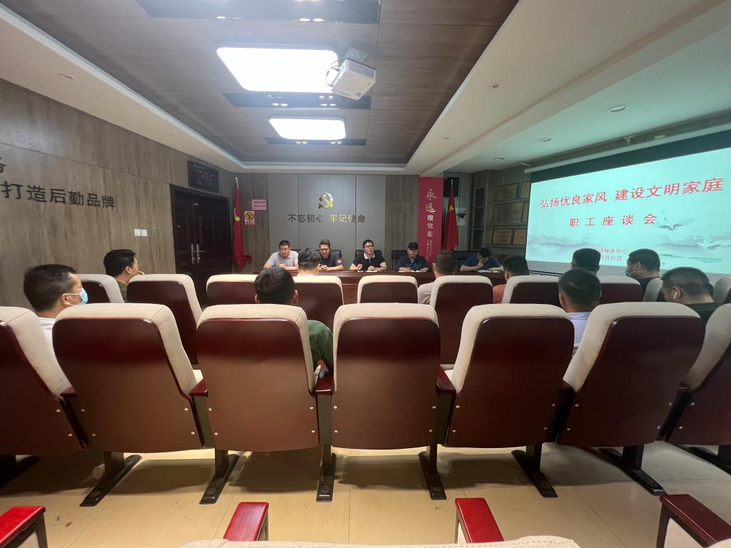 国际六一儿童节来临之际,为宣传和培育社会主义核心价值观,积极传承尊老爱幼、科学教子、勤俭持家的家庭美德,5月31日下午,后勤管理服务中心在四楼党员之家召开“弘扬优良家风 建设文明家庭”职工座谈会。后勤领导班子成员、有14岁以下青少年子女的职工参加座谈,座谈会由后勤分工会主席王宁主持。