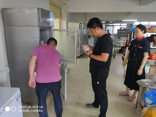 为认真贯彻落实安全生产月精神,全面加强食品及消防安全工作,饮食服务部于6月25日组织餐厅各窗口人员学习了《安全生产法》《消防法》《高等学校消防安全管理规定》《食品安全法》等法律法规,并结合工作实际,对餐厅进行了安全排查。同时对工作人员提出了相应要求:要求从业人员统一服装,时刻保持个人卫生,严格按照食品加工操作规范进行操作,人人做到持证上岗,人人感应牌出入操作间。对原材料严格把关,索票、索证、严格备样。另外还检查了食品的储存、留样柜的留样和餐具的消毒以及对消防器材灭火毯、灭火器进行严格检查,对不符合要求的立即进行了更换。