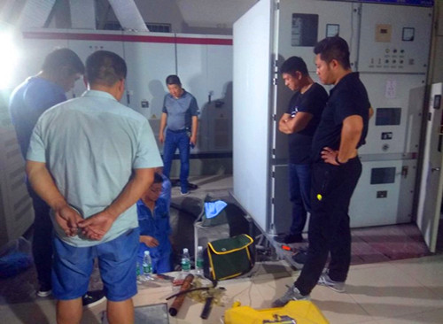 后勤管理服务中心主任胡振江接到故障报警后,立即来到现场了解情况,马上召集项目维修部人员立刻进行抢修,要求一定要确保教学楼教学用电,保证空调运行正常,并安排专人现场协调督办。经过9个小时的奋战,于凌晨1时30分顺利完成抢修任务,恢复楼宇全线供电。