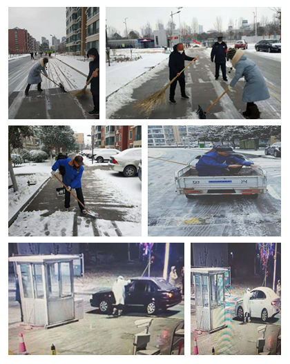 2月5日,天气突变,大风降温、雨雪肆虐。虽然室外很冷、风很大、雪粒打脸,但是在里仁居值班的工作人员,为了战胜疫情、为居民的安全、为了肩上的责任,坚持在风中站岗、在雨中查验、在雪中值守。不顾天气恶劣,清除积雪、车辆消毒、人员核对、体温查验以及帮忙给隔离户送食品蔬菜一样也没有耽误,而且越是恶劣天气,越是规范工作、严格要求。充分体现了后勤人特别能吃苦、特别能战斗、特别能奉献,困难时期一马当先的精神。