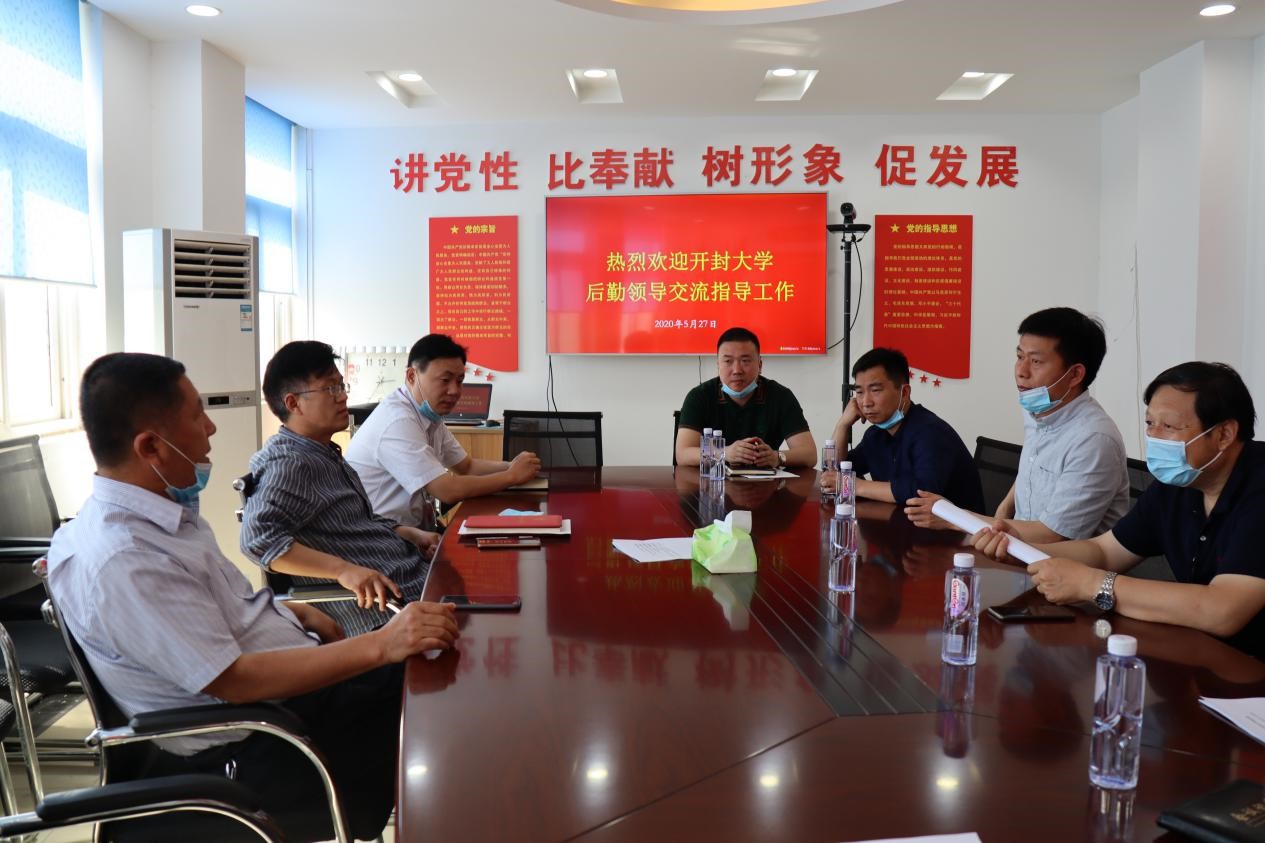 5月27日,开封大学后勤党支部书记田路春、主任徐纪珂一行6人,到后勤管理服务中心交流工作。后勤党总支书记王建设、主任胡振江在四楼会议室热情接待了开封大学后勤领导一行。