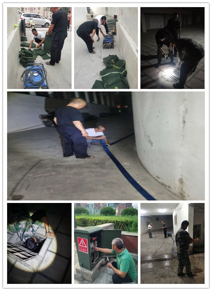 7月21日下午里仁居管理办全体职工在科长高涛同志的带领下,对地下车库内的用电线路和地下排水管网进行检查,并采取储备沙袋、安装抽水泵、铺设水带等预防措施,确保小区大雨降临时地下车库安全和下水管网畅通,积极为居住在小区的居民做好服务保障工作。