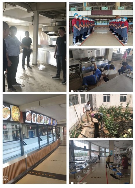 饮食服务部利用假期对学生餐厅进行改造,包括售饭台改造、加装灯箱;后厨走廊及操作间更换集成吊顶及贴瓷砖、粉刷墙面;电路、燃气管道、化粪池改造、更新卡机等,对食堂工作人员进行6S质量管理体系培训。后勤医务保健科积极做好疫情防控常态工作,不断完善发热处置应急预案;教学服务科扎实做好教学设备检修及投影设备升级改造;绿化保洁科对校园环境进行全方位消杀,对校内卫生死角进行垃圾清运;项目维修服务部对教学楼、实训楼等重点部位进行电路检修,确保校内无安全隐患。
