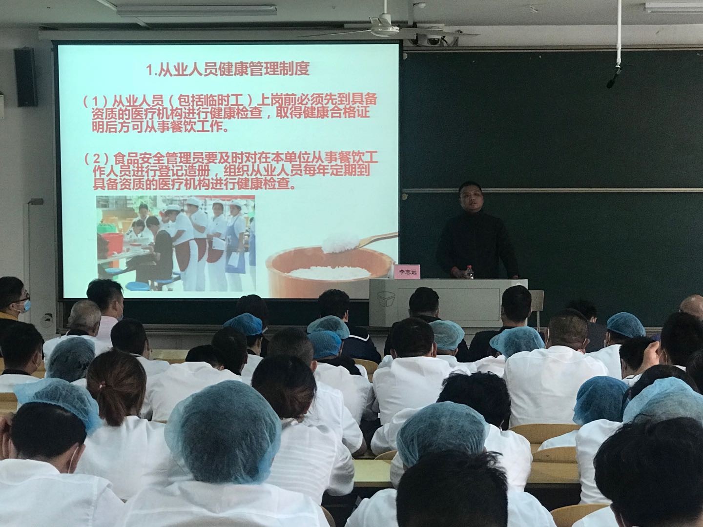 为更好的贯彻落实国家《食品安全法》,强化食品安全监督管理的责任,保障师生的饮食安全。10月23日,后勤饮食服务部邀请开封市食品安全监督所李志远为食堂管理人员及食堂从业员工进行2020年度食品安全培训。