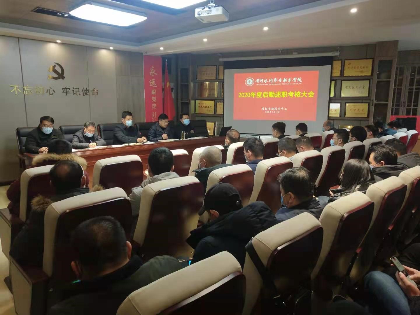 1月12日下午,后勤管理服务中心在四楼党员之家组织召开2020年度述职考核会,以学校党委组织部副部长焦东良为组长的考核组成员出席会议,后勤领导班子成员、部门经理及党员、职工代表参加会议,会议由党总支书记王建设主持。