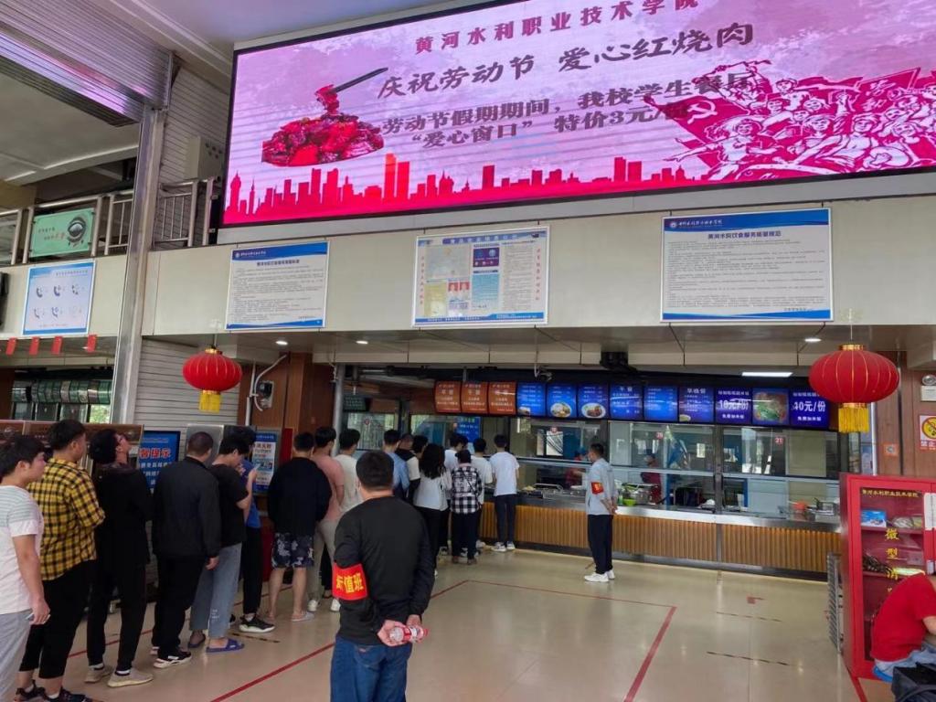 后勤管理服务中心在五一期间,为了做好假期留校学生服务工作,让同学们体会劳动者的辛苦,感悟劳动光荣,紧密融合服务育人和劳动育人。后勤以远远低于成本价“爱心供餐”的方式,为同学们提供“五一红绕肉套餐”,在五一、五四双节之际,为同学们“添勺肉”、“加个菜”。让广大学子在节日期间吃的好、心情好、休息好、学习好,感悟学校的温暖,以更大的精力和热情投入到新的学习之中。