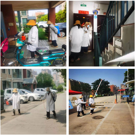 后勤领导要求小区消杀必须做到:全方位、全时空,不留死角、不留盲区、注意安全、关注重点。为做好消杀、阻断疫情、消除隐患,管理办提前规划消杀作业路线,提前标注好重点部位,在专业人员现场指导下,采用喷雾消毒机与人工消杀相结合的方式对门岗、进入车辆、楼道、快递箱、健身器材等公共区域和设施进全覆盖消杀,烈日炎炎、高温难耐,后勤人员用自己的汗水换来了小区环境的安全和小区居民的赞誉。