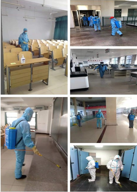 后勤利用周六、周日学生上课不集中的时间段,组织专业人员对行政楼、教学楼、实训楼、学生餐厅、学生活动中心、建筑工地等室内外环境进行了大消杀,确保病毒无处藏身、所有环境无处不安全。 后勤管理服务中心将在下步工作中坚持更加科学、精准、规范的防范举措,坚决做好疫情防控消杀工作,有效防止和阻断病毒传播,最大限度保障师生身体健康。
