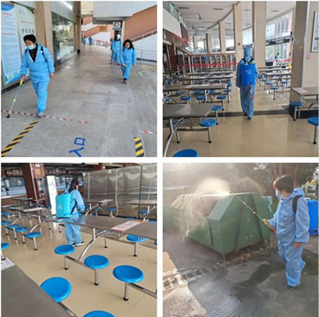 近日,随着天气的转冷,新冠肺炎疫情在全国多个省份爆发,后勤管理服务中心面对新一波疫情,坚持“以生为本”,不畏战、不厌战,再次冲到疫情防控第一线,用行动践行党史学习成效,用行动筑牢学校安全防线,在全校进行拉网式全范围、全方位、无死角、无盲区的环境大消杀。
