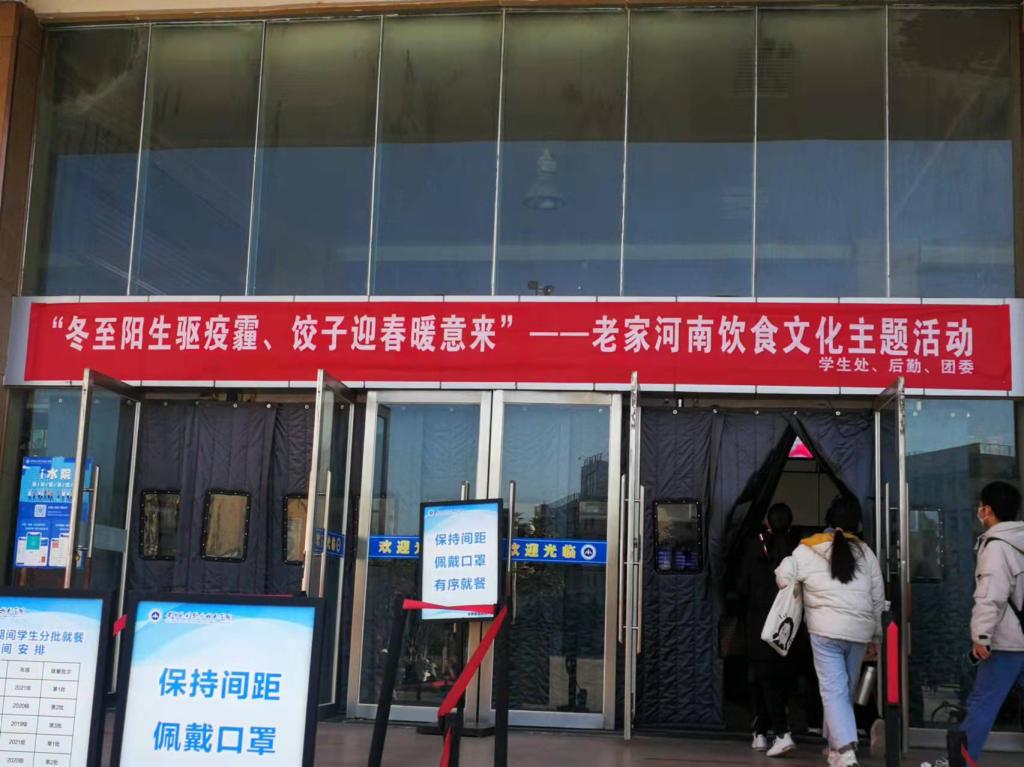 冬至是中华民族二十四节气之一,素有“冬至大如年”的说法,吃饺子庆贺冬至的习俗,起源于河南,是为了纪念南阳医生张仲景,后发展为中国传统文化习俗。为弘扬中华民族传统文化、饮食文化,12月21日,后勤管理服务中心联合校团委、学生处组织开展了“冬至阳生驱疫霾、饺子迎春暖意来”老家河南饮食文化主题活动。校党委副书记、工会主席杨士恒,副校长菅浩然也莅临活动现场与同学们一起快乐过冬至。