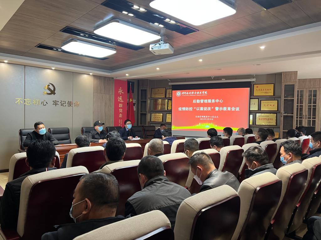 为进一步贯彻落实好校党委决策部署,进一步压实责任,坚决筑牢校园疫情防控防线,维护学校师生生命安全和身体健康,3月29日下午,后勤管理服务中心在四楼党员之家召开疫情防控“以案促改”警示教育会议,后勤领导班子、全体党员参加会议。会议由党总支书记王忠伟主持。