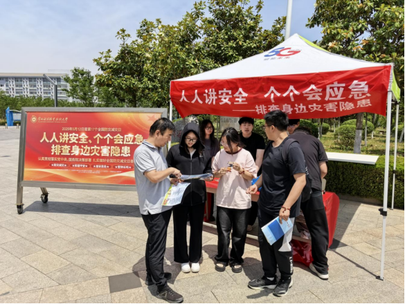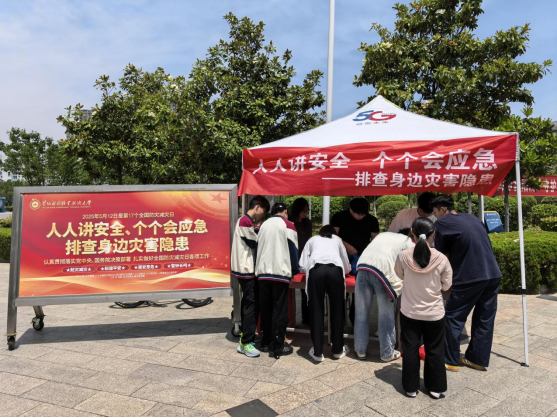 在活动现场,工作人员在后勤管理服务中心党总支书记管欣的带领下,面向经过的师生开展了主题为“人人讲安全、个个会应急”的提升防灾避险能力科普宣教活动,通过与师生面对面宣讲灾害事故危害和安全防范技能,提升师生安全意识和应急处置能力,并向师生发放了宣传资料,现场学生也纷纷表示增进了防灾减灾的知识。
