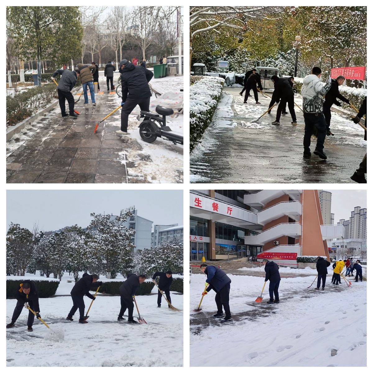 此次清雪行动,不仅展现了后勤管理服务中心 “以师生为中心” 的服务宗旨,更彰显了全体职工不畏严寒、团结协作的精神风貌。无论是经验丰富的老同志,还是朝气蓬勃的青年力量,大家拧成一股绳、劲往一处使,用实际行动筑牢了校园安全防线,为全校师生及家属院居民筑起了一条温暖的“平安路”。