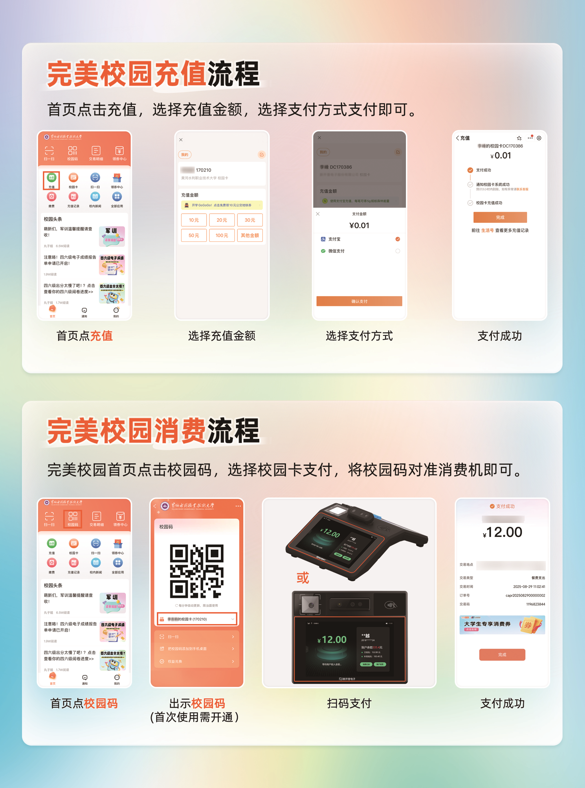为持续优化服务品质,进一步推动信息化服务建设,后勤管理服务中心将于2025年9月2日(星期二)正式启用我校校园卡电子支付功能。为确保广大师生员工能够顺利开通使用,现将我校电子支付校园码的相关事宜通告如下: