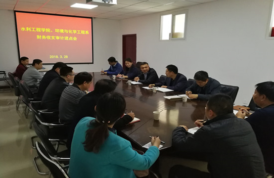 3月28日上午8:30,水利工程学院、环境与化学工程系财务收支审计进点会在5号实训馆5312会议室召开。副校长刘玉宾、审计组成员和接受审计的两个院系科级以上干部参加了会议,会议由审计处处长李冠军主持。