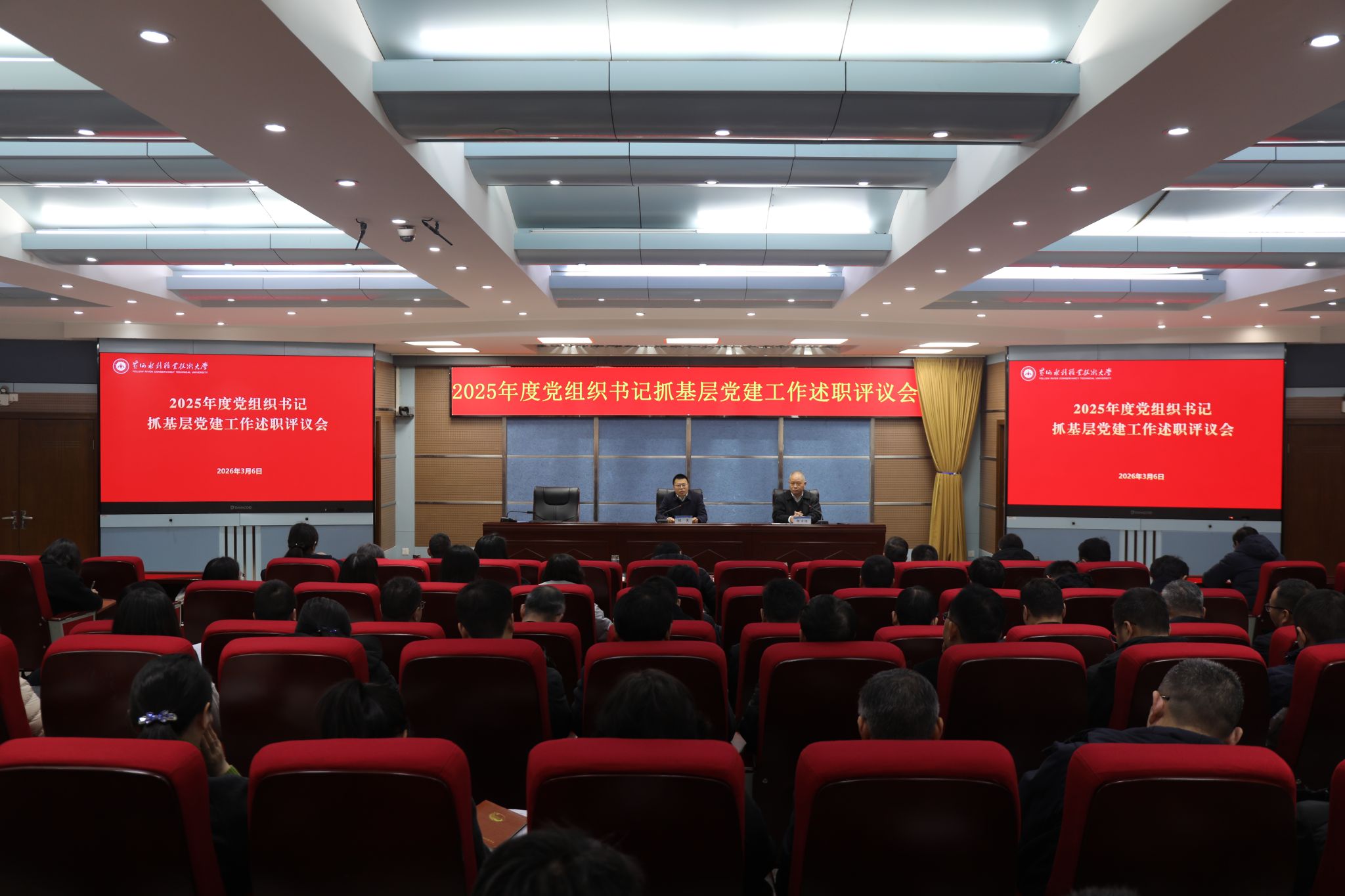 为压实基层党建责任、提升党建工作质量,3月6日,学校在三号实训馆学术报告厅召开2025年度基层党组织书记抓党建工作述职评议会。全体校领导、各基层党组织书记、全体中层干部参加会议。会议由校党委副书记、工会主席杨士恒主持。