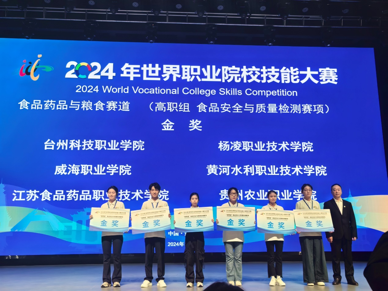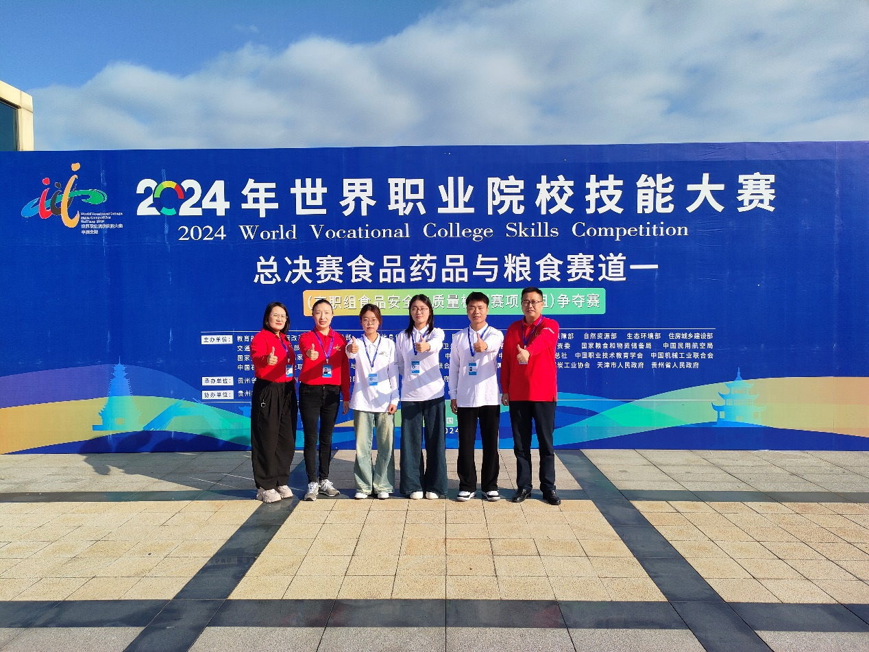 10月26日至30日,2024年世界职业院校技能大赛总决赛争夺赛高职组食品药品与粮食赛道一食品安全与质量检测赛项在贵州农业职业技术学院举办,大赛主题为“技炫青春,能创未来”,来自全国各省(自治区、直辖市)的61支队伍同台竞技,经过激烈角逐最终落下帷幕。由我校环境工程学院教师申森、郑黎静指导,食品质量与安全专业学生孟荣雨、朱新新、陆家顺组成的竞赛团队脱颖而出,勇夺金奖。