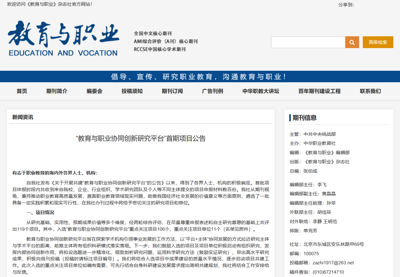 关于开展共建“教育与职业协同创新研究平台”的公告