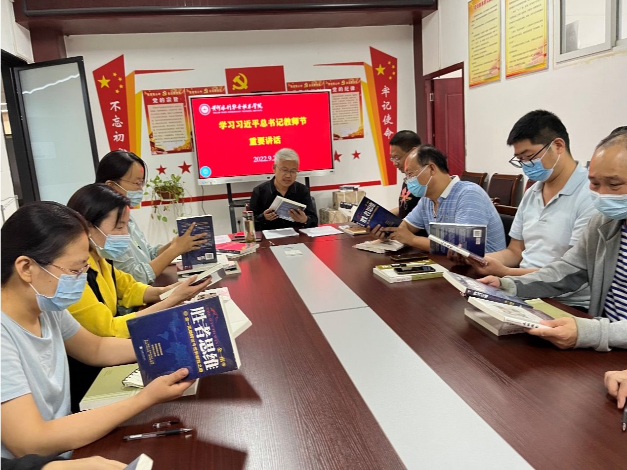 会后,王建设书记为每位党员教师分发两本书籍,希望广大党员教师能够谨记总书记对教师的期望和嘱托,树立终身学习理念,加强学习,不断提高业务能力,争做学生心目中的好老师。