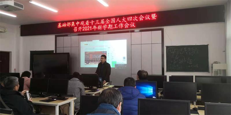 2021年3月5日上午,基础部在SY5522召开新学期全体教工会议,会议由部主任吕振雷主持。