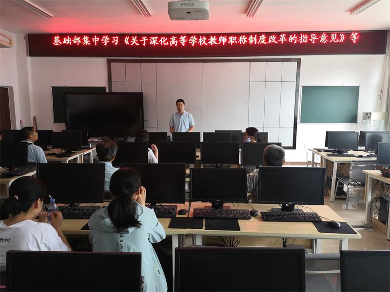 6月8日下午,基础部在SY5522集中学习《关于深化高等学校教师职称制度改革的指导意见》《关于全面深化新时代教师队伍建设改革的意见》等,学习会由部主任吕振雷主持,全体教师参加学习。