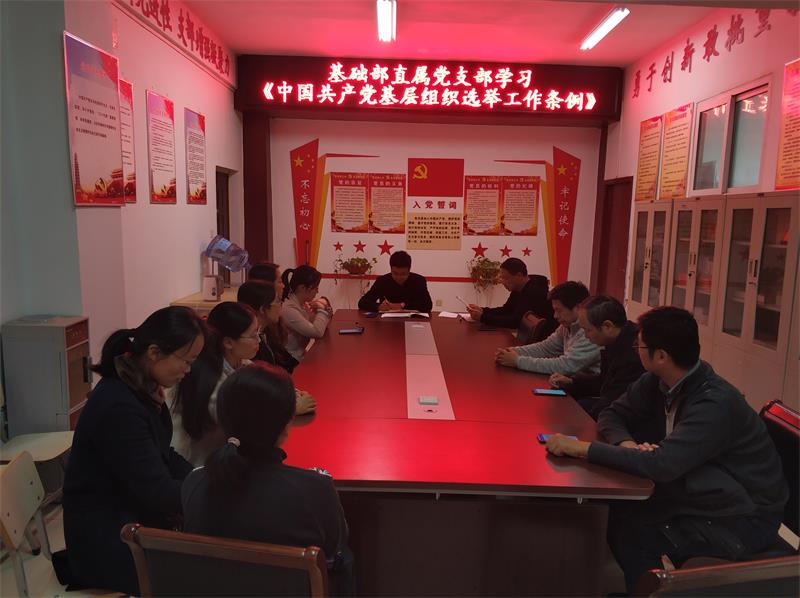 10月20日下午,基础部直属党支部在党员活动室开展《中国共产党基层组织选举工作条例》学习会。会议由直属党支部书记吕振雷主持,部党员教师参加学习。