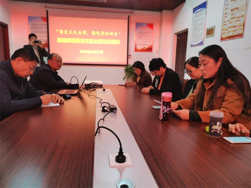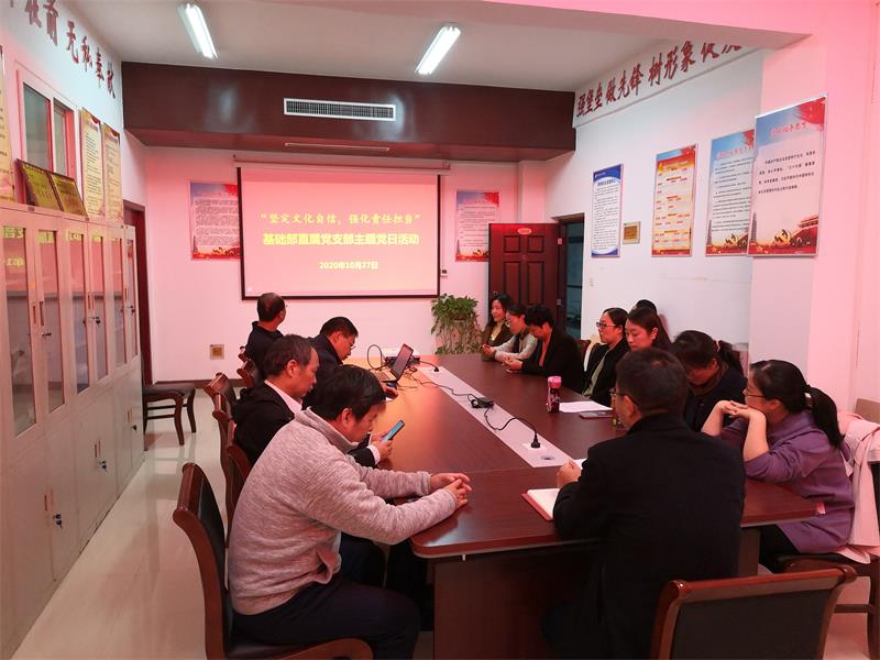 10月27日下午,基础部直属党支部在党员活动室开展“坚定文化自信,强化责任担当”主题党日活动,活动由直属党支部书记吕振雷主持,全体党员参加。
