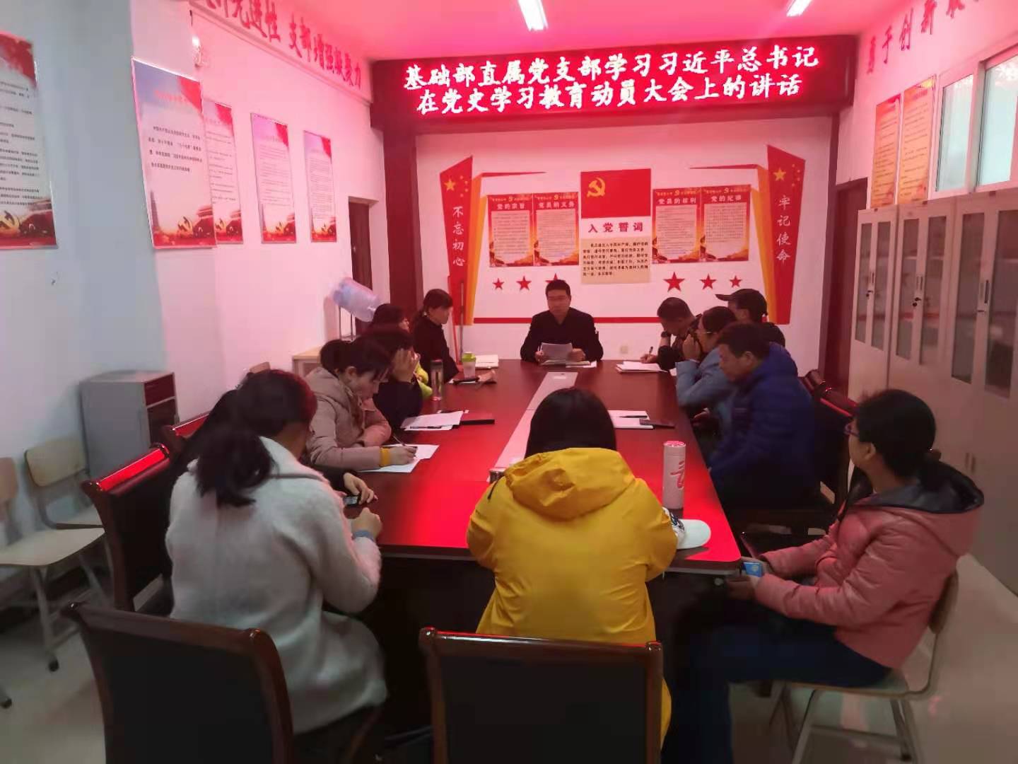 2021年3月9日下午,基础部直属党支部在党员活动室召开全体党员会议,集中学习习近平总书记在党史学习教育动员大会上的重要讲话等。会议由直属党支部书记吕振雷主持,全体党员参加。