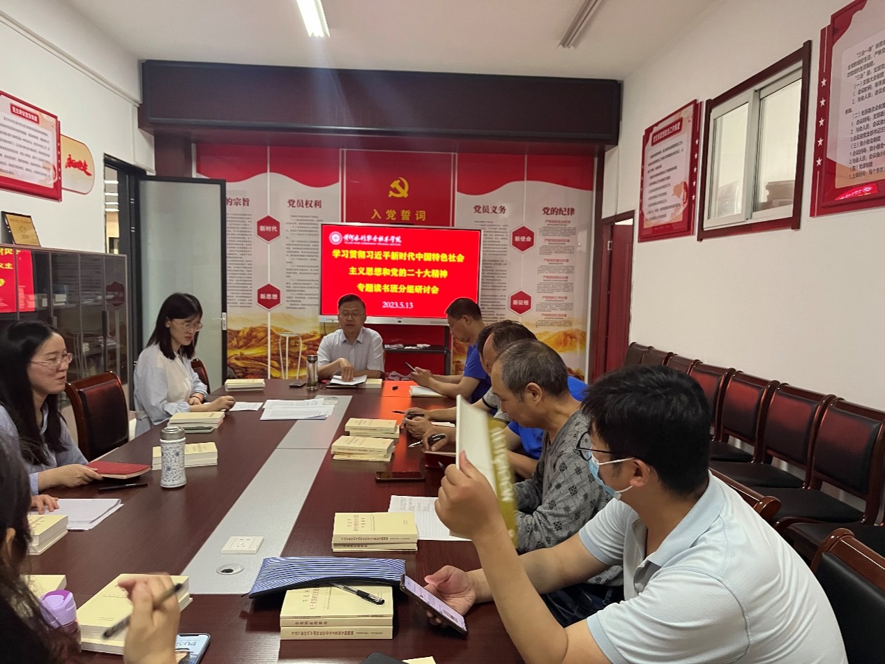 5月13日下午,基础部直属党支部在党员活动室召开学习贯彻习近平新时代中国特色社会主义思想和党的二十大精神专题读书班分组研讨会,全体党员参会,副主任唐仙芝列席会议,会议由直属党支部书记王建设主持。