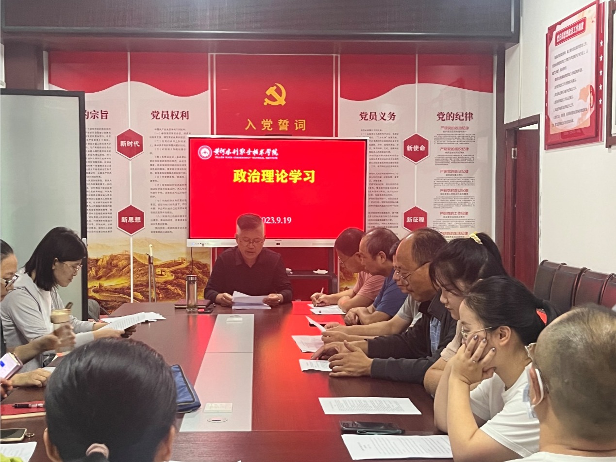 基础部直属党支部9月19日在党员活动室,进行师德师风专题政治理论学习,会议由直属党支部书记王建设主持,基础部全体党员参加会议。