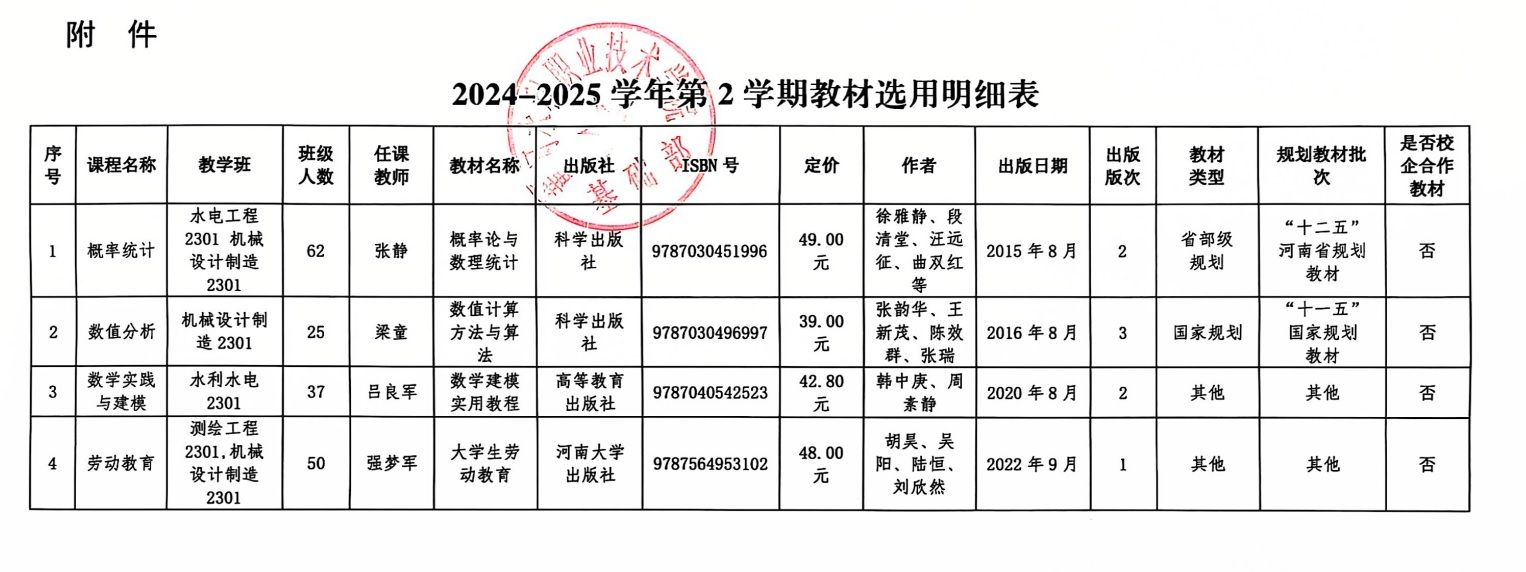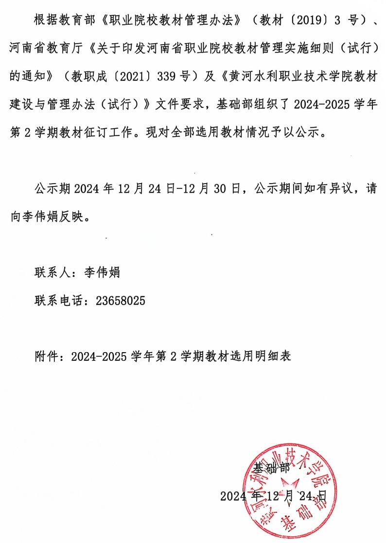 关于2024-2025学年第2学期教材选订情况公示