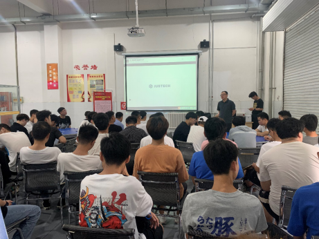 杰士德精密工业有限公司成立于2006年3月,拥有自动化与模具产品两大事业部,现有员工近1200人,分别分布在上海、深圳、郑州、常熟等地。本次订单班面向我院工业机器人技术专业19级学生。企业主管生产技术工程师介绍了公司发展历程以及公司提供非标自动化生产线客户的生产情况,计划在订单班成立后进行驻地培训,本次订单班驻地设在新郑富士康,岗位从事非标自动化生产线的架设和运维管理。