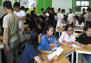 9月14日,在学生活动中心,胡格班教学实施组成员组织学生进行胡格班与胡格教学法体验式宣传。