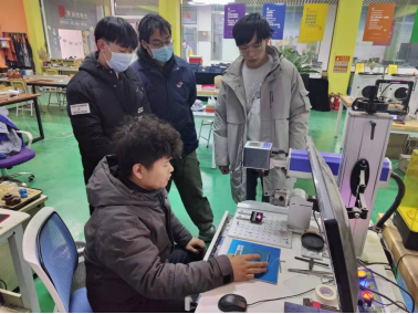 激光打标机是用激光束在各种不同的物质表面打上永久的标记。打标的效应是通过表层物质的蒸发露出深层物质,从而刻出精美的图案、商标和文字.2021年12月5日,为提升我创客空间人员动手操作能力,技术人员带领进行激光打标的现场操作并上机操作。通过学习,可以进行简单的打标。此次讲座将同学们带进激光的世界,激发同学们的探索精神和对新事物研究的积极性。