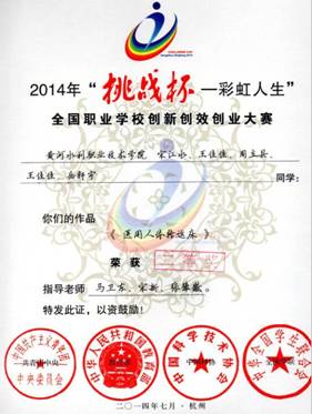 2008-2010年连续三年荣获全国高职高专职业技能大赛河南省赛区一等奖,2012-2016年连续六年荣获全国高职高专职业技能大赛河南省赛区一等奖,并在2013年和2014年荣获全国高职高专职业技能大赛二等奖和三等奖,并受到学校嘉奖令!