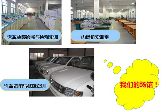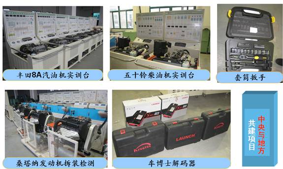 截至2017年4月,汽车检测与维修技术专业,已经完成了一个设备完备、技术先进的具有“校企合作、工学结合”特色的校内专业实训基地建设。校内实训基地下设有7个实训室——内燃机实训室、车辆底盘实训室、汽车电器实训室、汽车电控实训室、汽车运行与检测实训室,汽车养护中心和驾驶培训基地(宏晟驾驶培训学校)等7个实训场所。