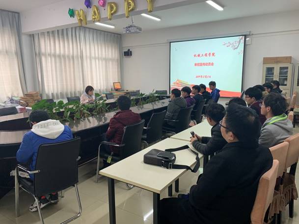 2019年3月5日,机械工程学院召开单招学生宣传员培训会,会议由机械学院校企合作办主任主持。