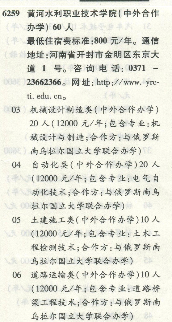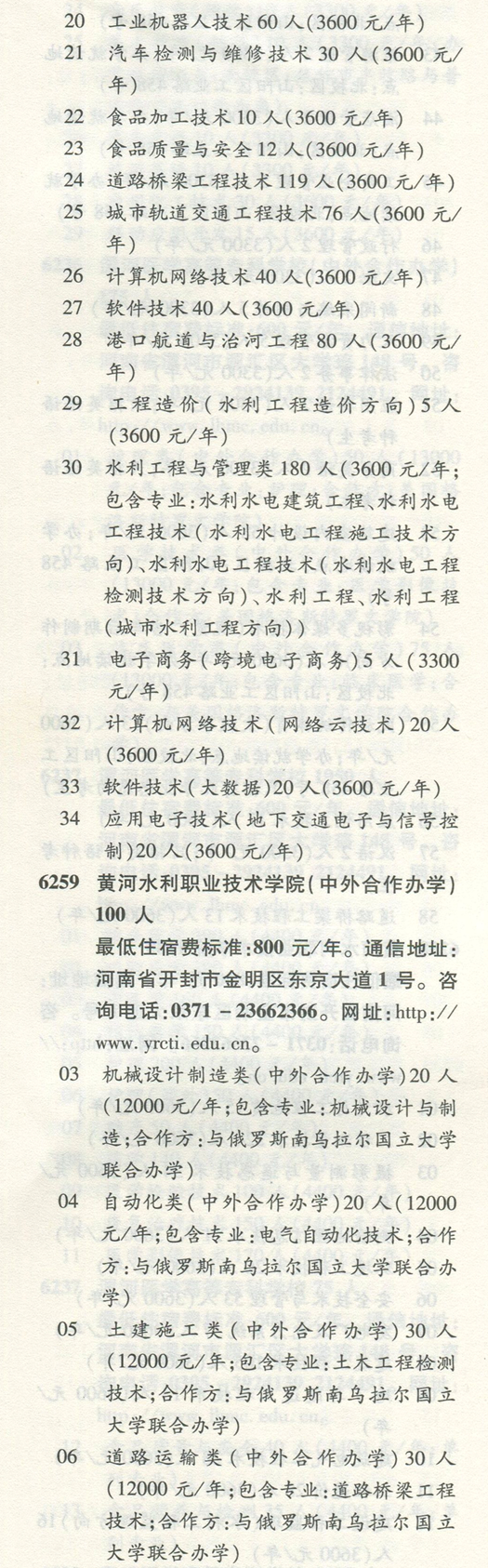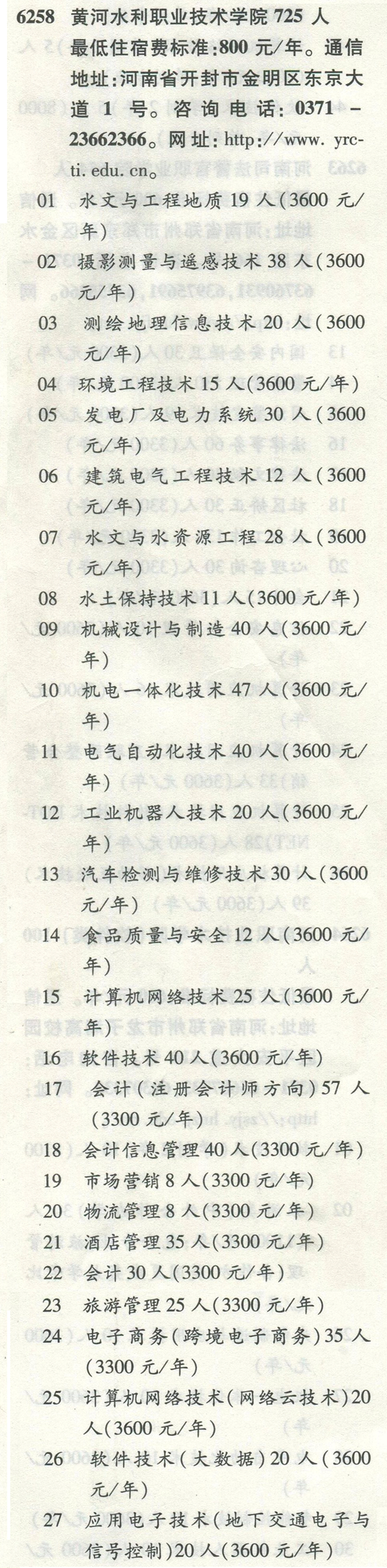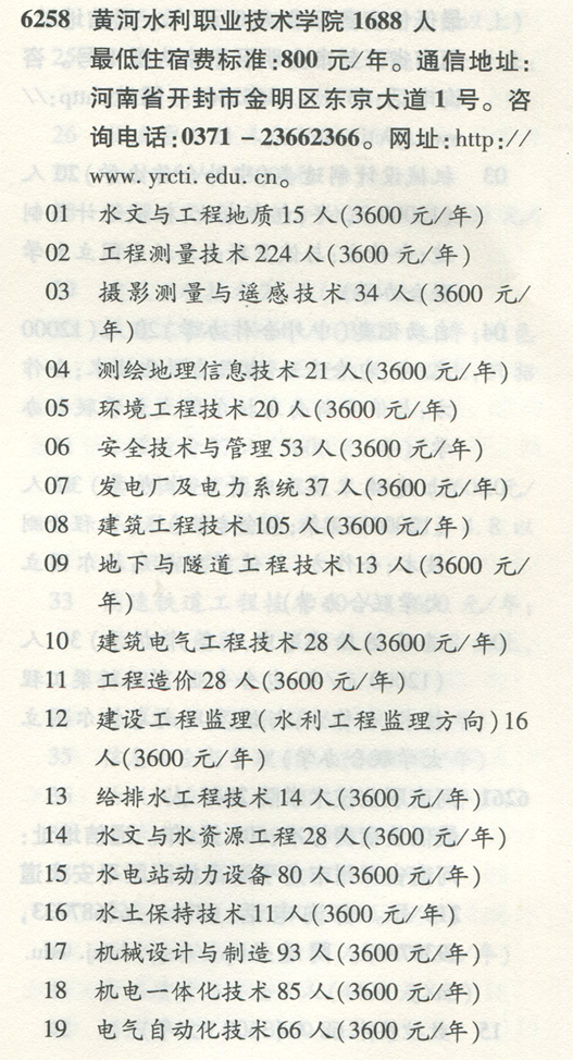 高职高专批——理科,招生代码6258、6259(在《招生考之友●理科》第661页)