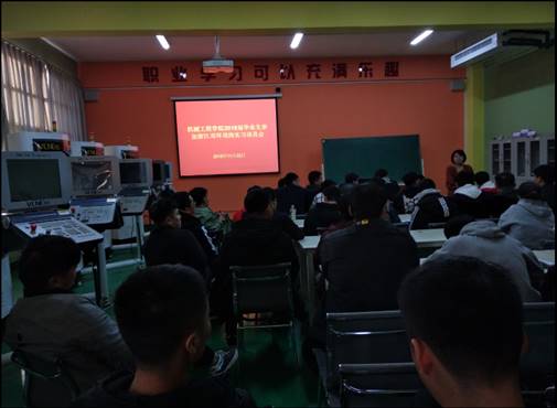11月22日下午四点,机械工程学院在实训楼5106A举行了2019届毕业生参加浙江双环顶岗实习动员会,我院校企合作办主任牛聪、16级辅导员翟保尊、就业专员王浩宇老师以及即将赴浙江双环顶岗的机械设计与制造、机电一体化技术、数控技术、汽车检修与维修专业的45名学生参加了本场动员会。