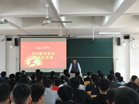 2019年10月12日,机械工程学院组织各专业学生召开2020届毕业生就业动员会,动员会由王振强书记为学生做就业动员,校企合作办主任和毕业班辅导员老师悉数参加。