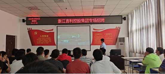 浙江吉利控股集团于9月25日在我校大学生就业市场第一报告厅(302室)招聘,招聘专业:机电一体化技术、机械设计与制造、机械设计与制造(中俄合作办学)、数控技术(智能制造方向)、汽车检测与维修、工程机械运用技术、工业机器人技术、模具设计与制造等相关专业。