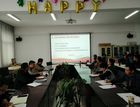10月23日,机械工程学院在SY5211开展第八周政治理论学习,组织学习《中国共产党纪律处分条例》、《中华人民共和国监察法》、《中共中央政治局贯彻落实中央八项规定的实施细则》、《黄河水利职业技术学院贯彻落实中央八项规定实施细则精神的办法》,会议由党总支书记王振强主持,全体教职工参加学习。