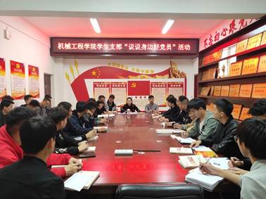 为激励广大党员发挥党员模范作用,争做合格党员。机械工程学院学生支部于2018年10月26日在SY5211召开了“说说身边好党员”主题活动,本次活动由学生二支部书记侯静主持,一支部二支部全体师生党员参加会议。