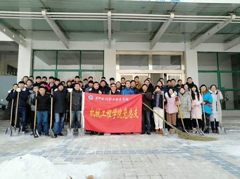 1月5日上午机械工程学院在4号实训楼前开展志愿扫雪活动