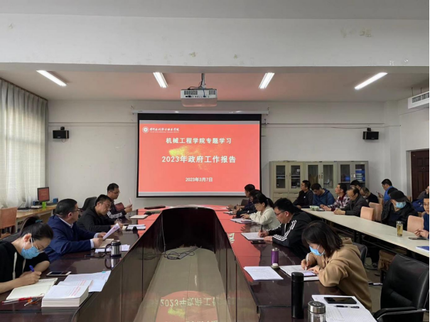 3月7日下午,机械工程学院在5号实训馆5211会议室组织专题学习活动,深入学习研讨2023年政府工作报告,学院全体教职工参加学习会。学习会由院党总支书记王振强主持。