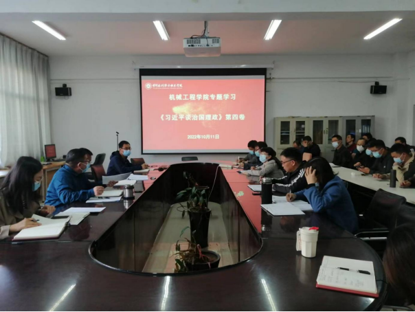 10月11日下午,机械工程学院在5号实训楼5211会议室组织专题学习活动,深入学习贯彻《习近平谈治国理政》第四卷(以下简称“第四卷”),学院全体教职工参加学习会。学习会由院党总支书记王振强主持。