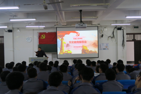 为贯彻落实习近平总书记在党史学习教育动员大会上的讲话精神,扎实推进党史学习教育工作,进一步促进广大师生党史学习教育的积极性,4月28日中午,机械工程学院在jx2302室举办党史学习教育专题报告会,院党总支书记王振强做专题报告。院学生党支部成员、学生干部代表、第49期入党积极分子及发展对象等150余人聆听了报告。报告会由院组织员王志伟主持。